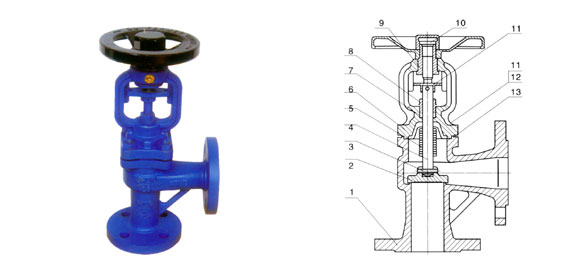 德标直角式波纹管截止阀 主要零件材料